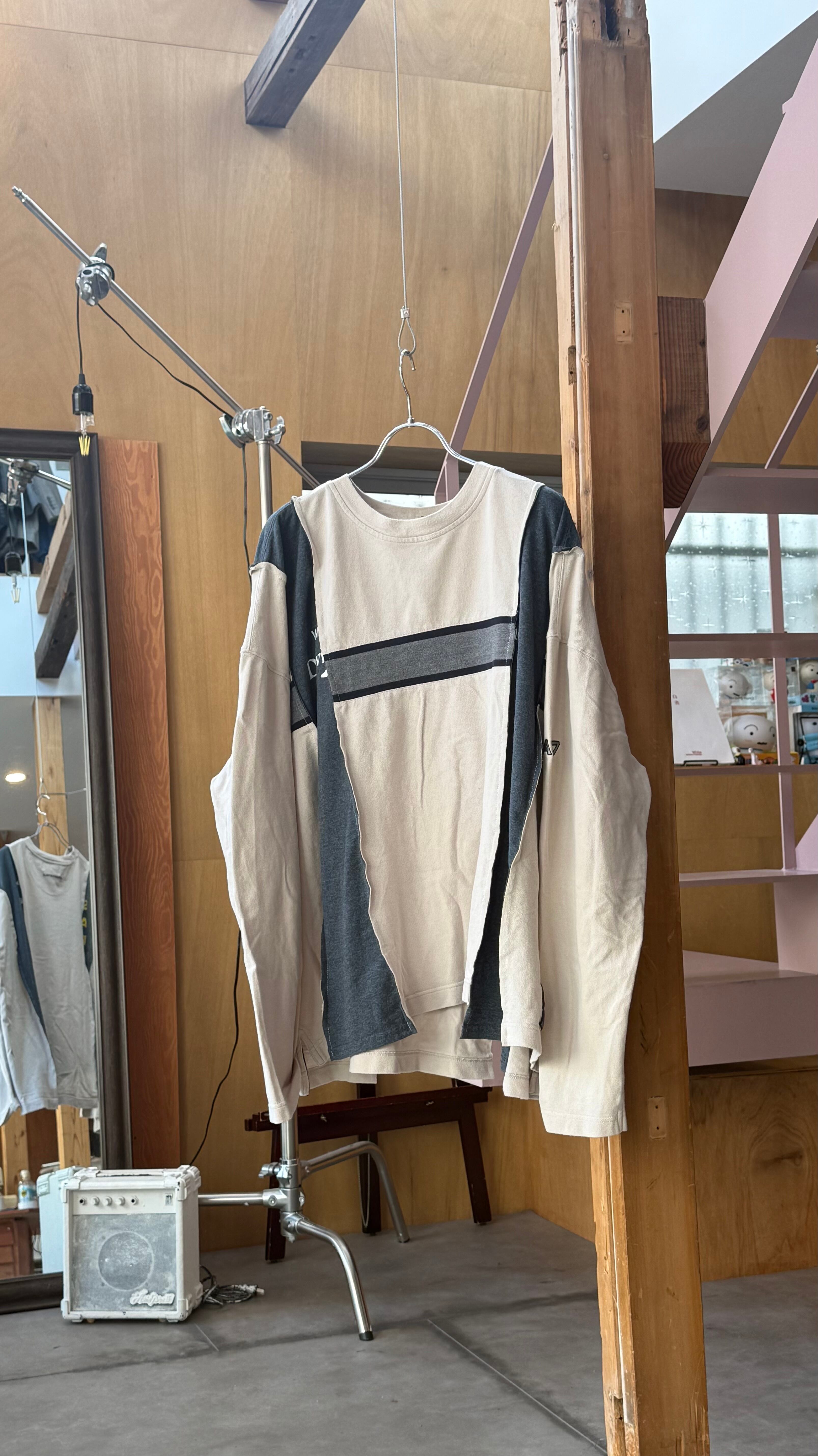 古着のリメイクアイテムとなっております。デザイナー/ HIROSHI YOSHIDA による一点物のアイテム、一つ一つデザイナー自身が縫製を施しております。