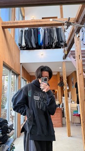古着のリメイクアイテムとなっております。デザイナー/ HIROSHI YOSHIDA による一点物のアイテム、一つ一つデザイナー自身が縫製を施しております。