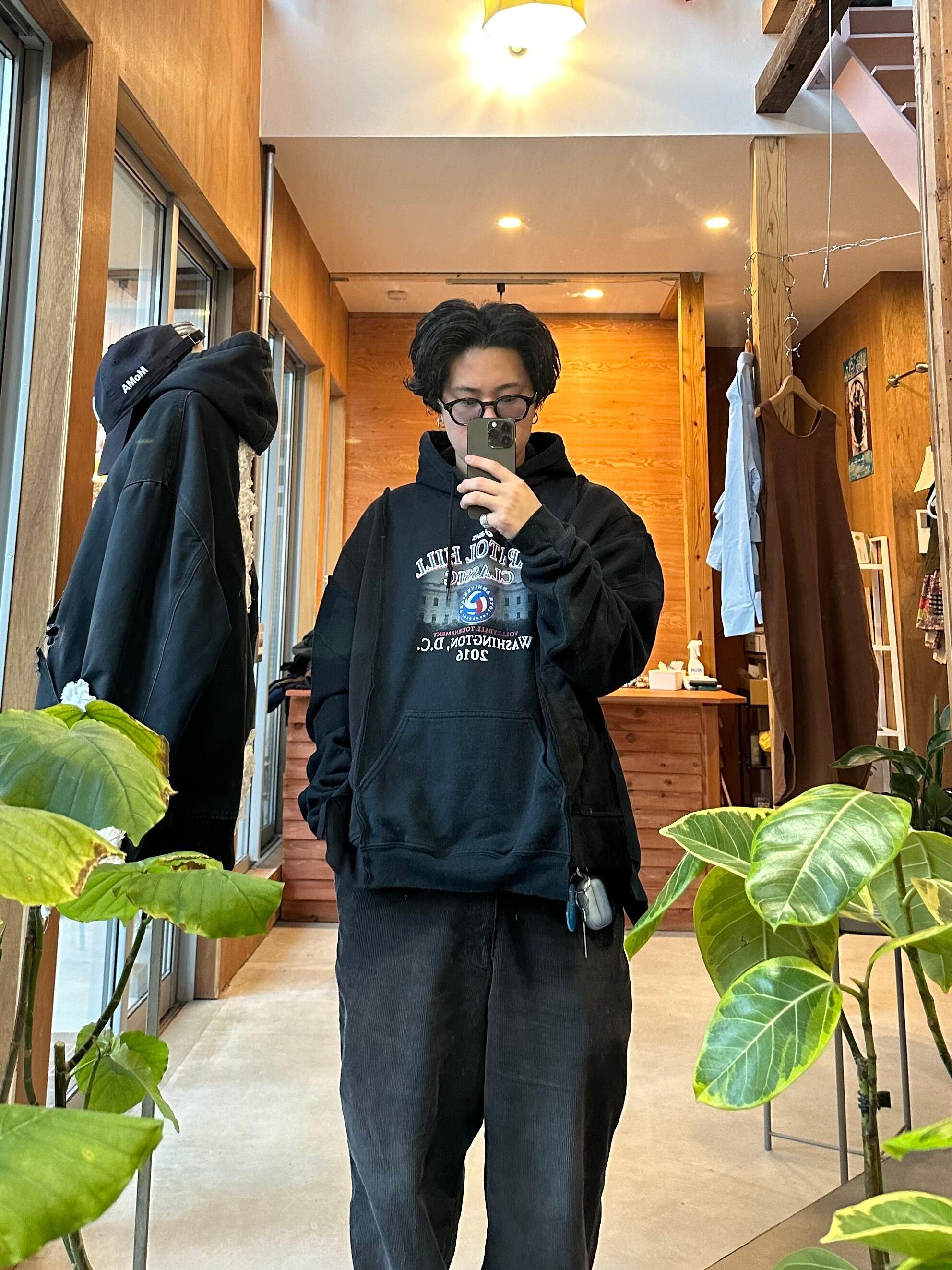 古着のリメイクアイテムとなっております。デザイナー/ HIROSHI YOSHIDA による一点物のアイテム、一つ一つデザイナー自身が縫製を施しております。