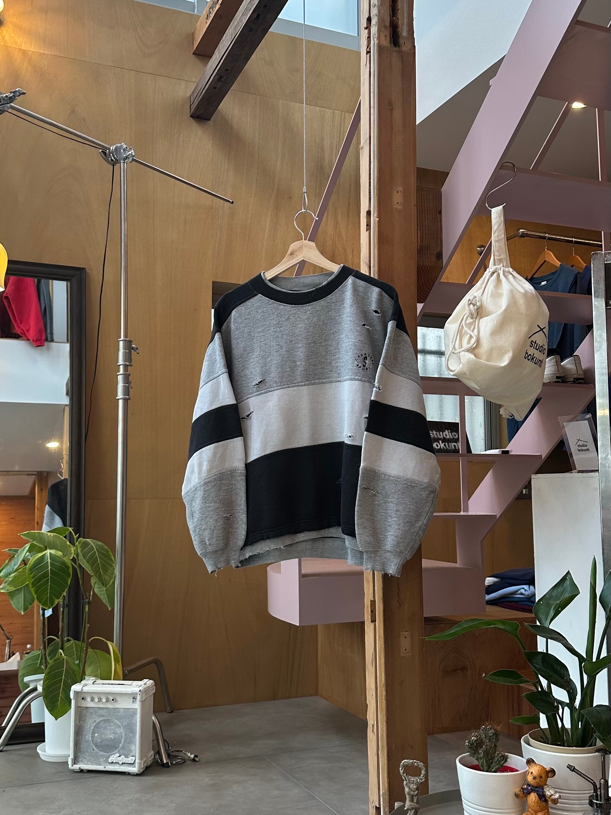 古着のリメイクアイテムとなっております。デザイナー/ HIROSHI YOSHIDA による一点物のアイテム、一つ一つデザイナー自身が縫製を施しております。