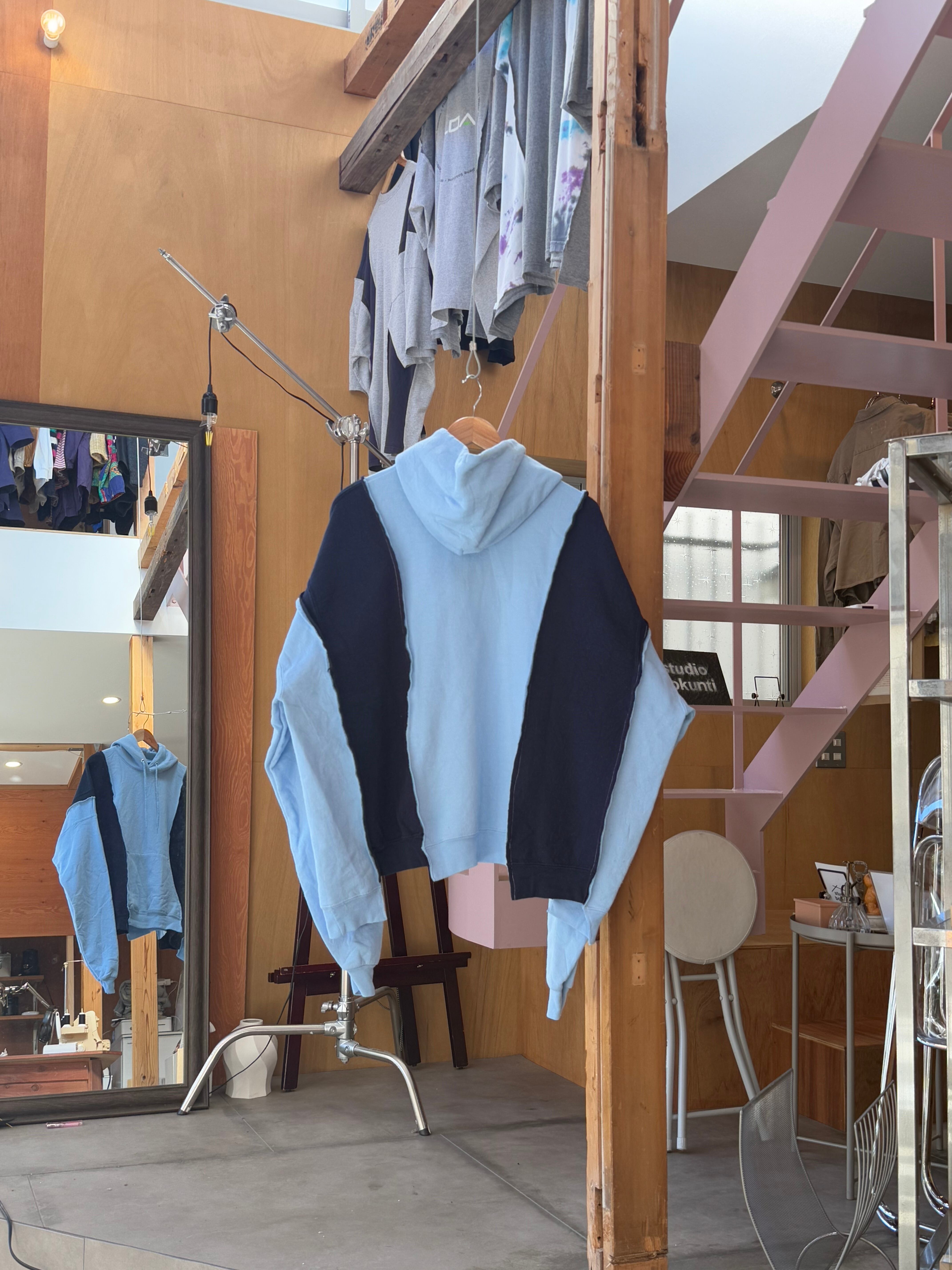 古着のリメイクアイテムとなっております。デザイナー/ HIROSHI YOSHIDA による一点物のアイテム、一つ一つデザイナー自身が縫製を施しております。